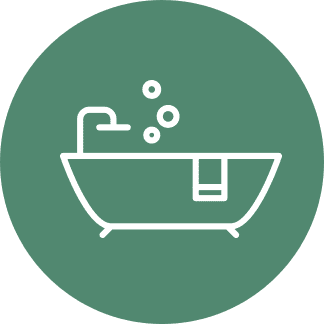 ・循環浴槽(24時間風呂、追い焚き風呂)は浴槽メーカーに事前確認する事。風呂釜等の湯垢が溶け出し、浴槽表面に垢によるザラツキが出る事がありますが、その場合は浴槽洗剤で落とす事。ホーロー浴槽や井戸水を使用している場合に、鉄分(錆)と反応し、まれに黒ずみが出る事があります。塩素系カビ取り剤を塗布し汚れを落としてください。