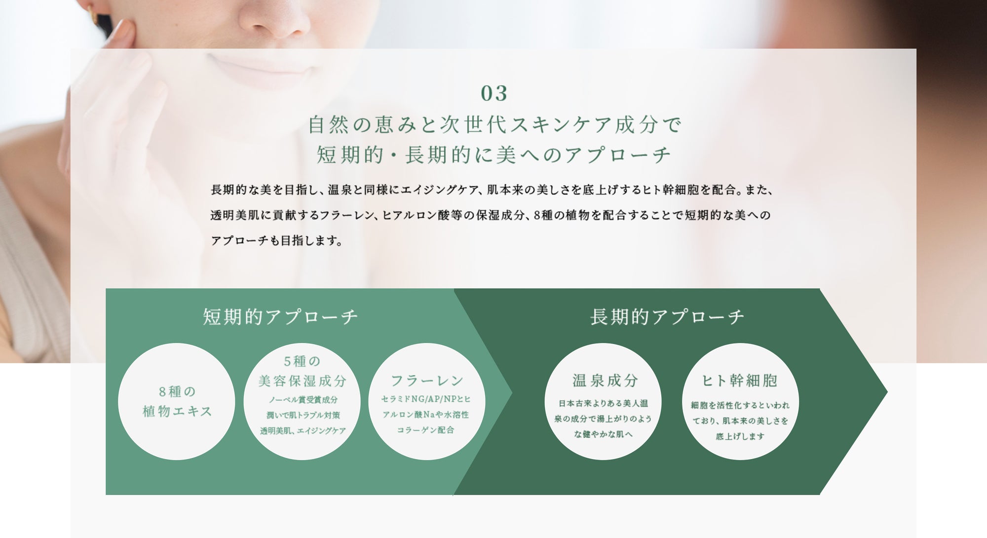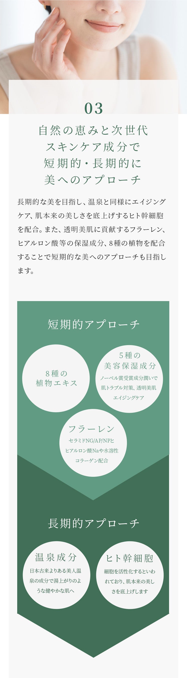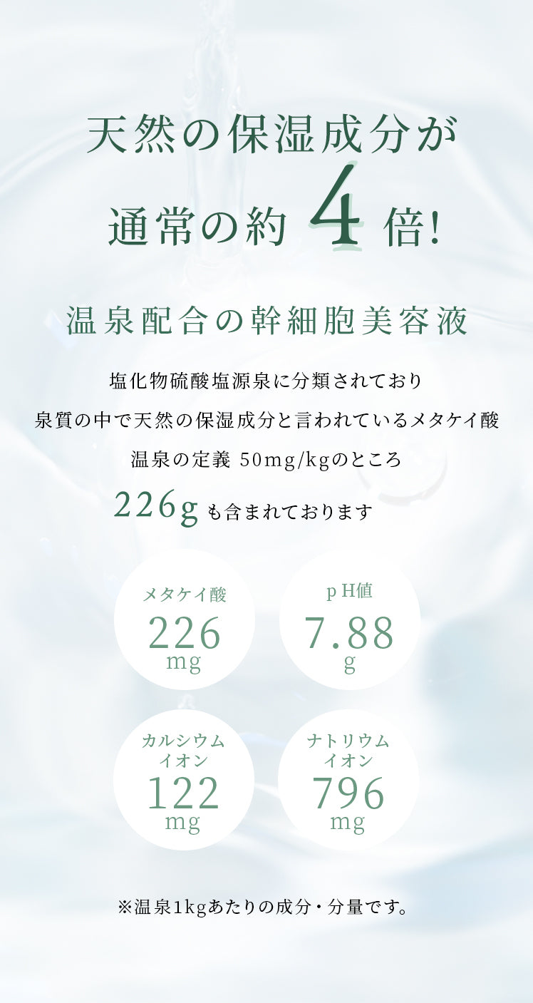 - 【日本古来と先端科学、時代を超えたスキンケアの融合 ヒト幹細胞 培養液 フラーレン 温泉水配合】良質な温泉と、エイジングケア 保湿 美肌潤い成分の配合。EGF FGF セイヨウナシ果汁発酵液 乳酸桿菌